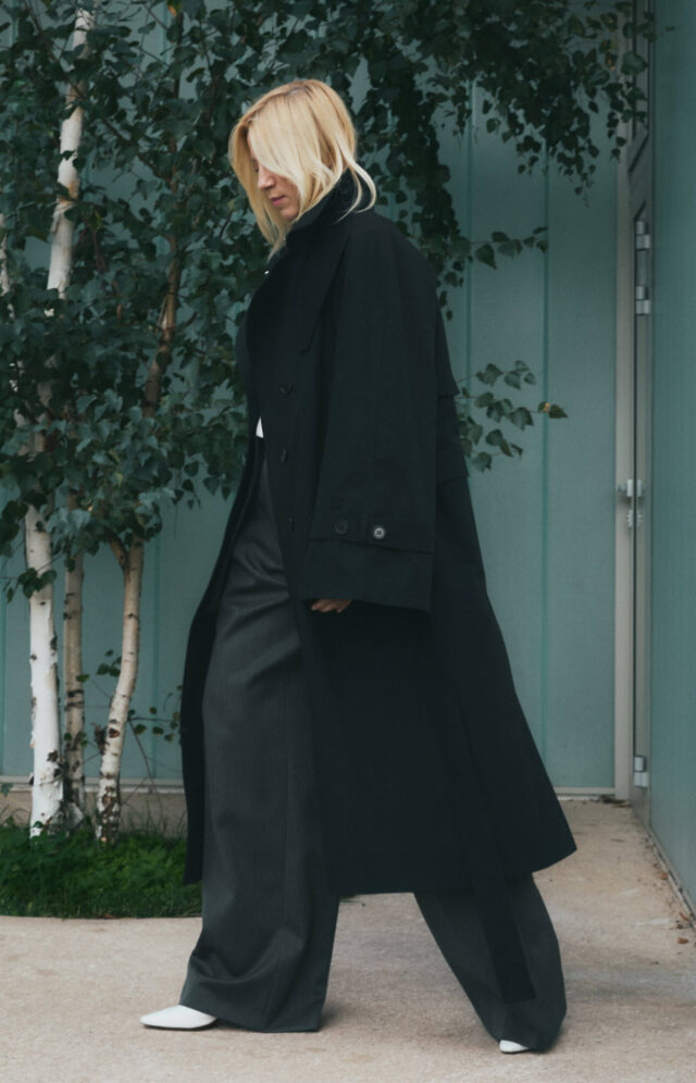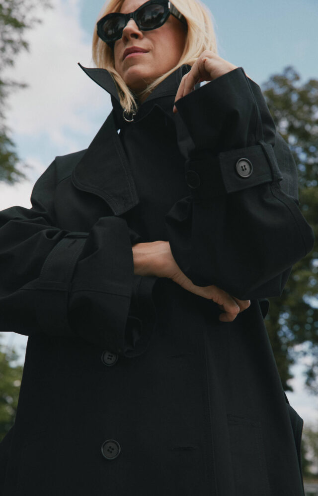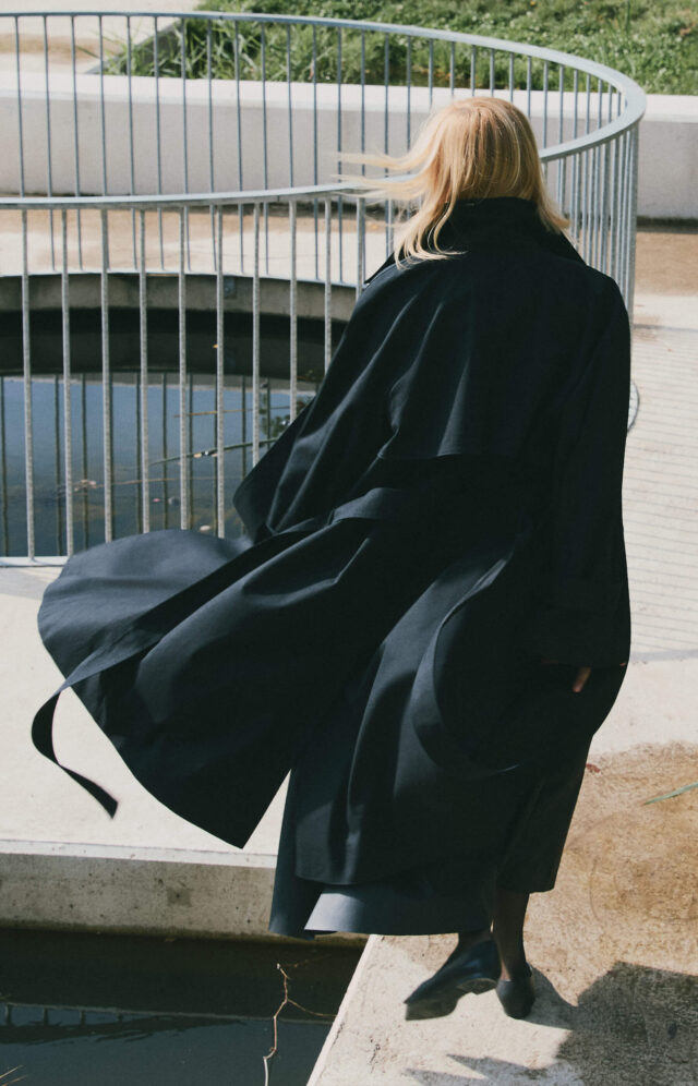 Limited edition trench coat in water-repellent organic cotton canvas, created in collaboration with Sonia Argint.