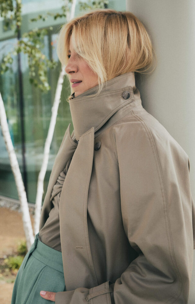 Limited edition trench coat in water-repellent Supima cotton canvas, created in collaboration with Sonia Argint.